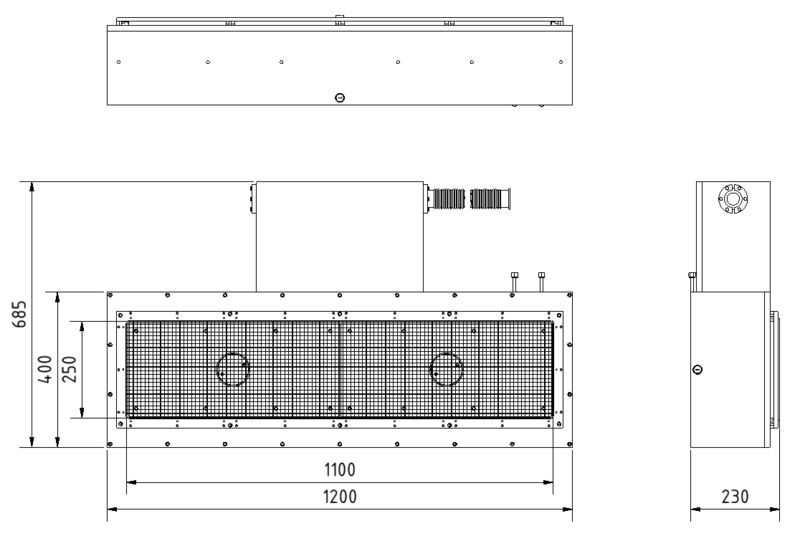 The COPRA IS1100x250-GRPE Built In Plasma Source have from the origin been designed for the assist of nearly any kind of PVD deposition processes.The unique design allows you also to integrate the COPRA IS1100x250-GRPE Built In Plasma Source completely inside vacuum in your existing Inline- or R2R-Coater in order to e.g. pre treat or oxidize your substrates. The COPRA IS1100x250-GRPE Built In Plasma Source is also easy to scale in size and power if requested. Please see the IS-custom design site.
